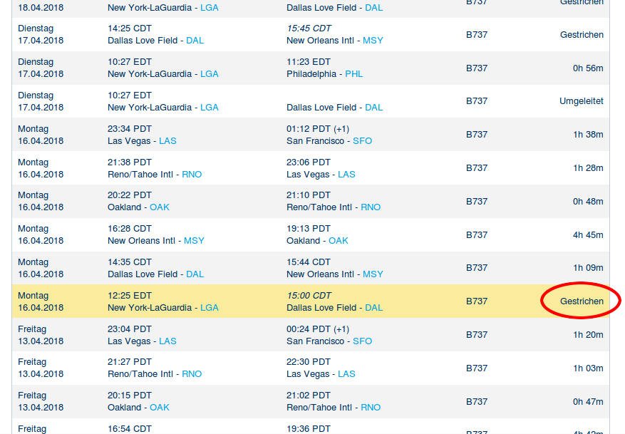 • Derselbe Flug wurde am Vortag gestrichen. [Bildschirmfoto]